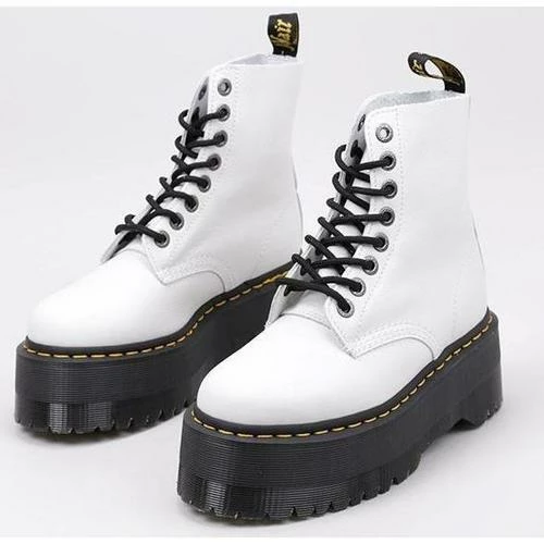 These boots from DR. MARTENS brand are called . Made of a Leather material upper and Leather/Textile lining.The color White and 6 cm heel made them perfect for any outfit.