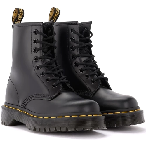 Anfibio Dr. Martens modello 1460 Bex Smooth realizzato in pelle lucida color nero. Modello 8 fori.