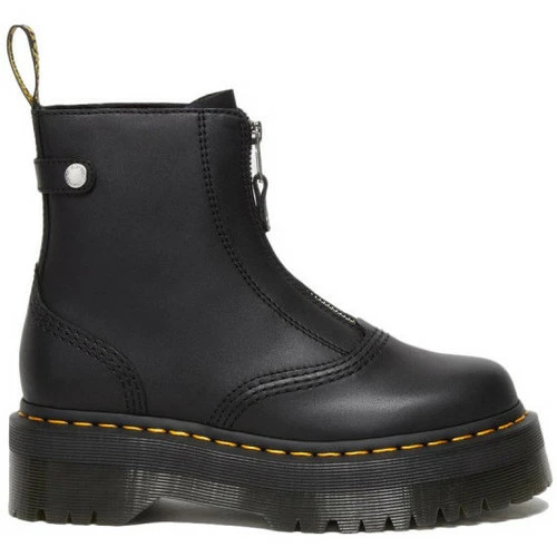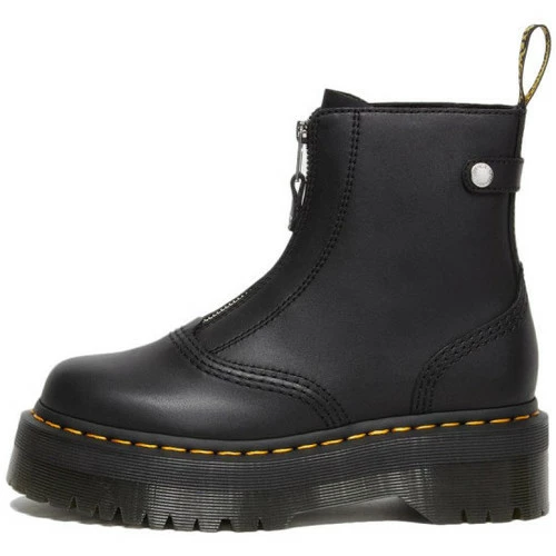 Boots Dr Martens JETTA PLATFORME- Réf. 27656001. Couleur : Noir. Détails. – Tige en cuir nappa semi-aniline. – fermeture zippée. – Semelle Quad Retro rainurée. – Surpiqûres jaunes. – Languette AirWair au talon.