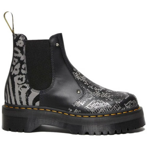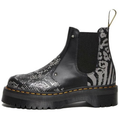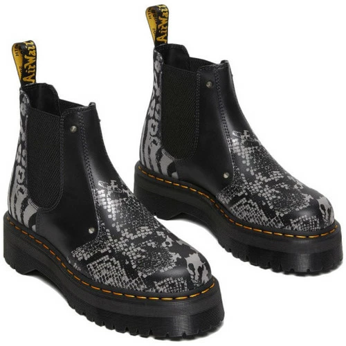Botte Dr Martens CHELSEA-2976 QUAD PLATFORME – Réf. 27692001. Couleur : Noir, Gris. Détails. – Tige en cuir. – signatures de DM’s. – Surpiqûres jaunes. – Languette à logo Airwair au talon. – Semelle en PVC.