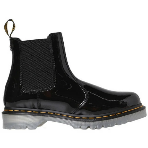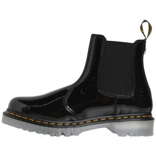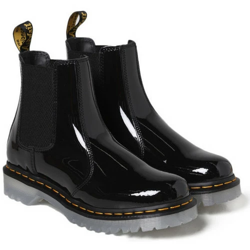 Botte Dr Martens 2976-ICED – Réf. 27811001. Couleur : Noir. Détails. – Cuir de veau. – Bout rond. – Panneaux latéraux élastiqués. – Tirette au talon. – Petit talon carré. – Semelle épaisse en caoutchouc.
