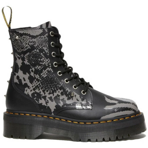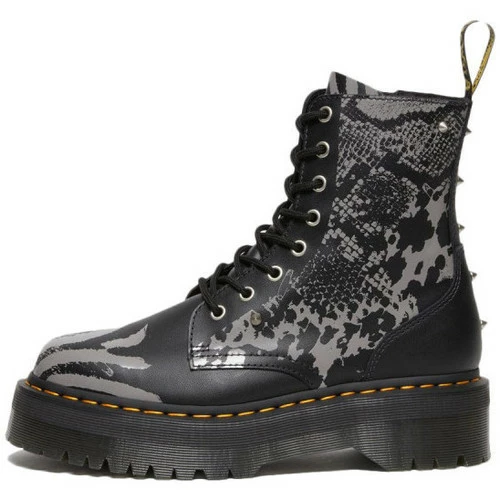 Botte Dr Martens JADON PLATFORME- Réf. 27669001. Couleur : Noir, Gris. Détails. – Tige en cuir nappa semi-aniline. – Crampons sur le panneau arrière. – Zip intérieur cheville. – Passepoilées jaunes. – Semelle Quad Retro de 2 pouces. – Boucle de talon AirWair scénarisée.