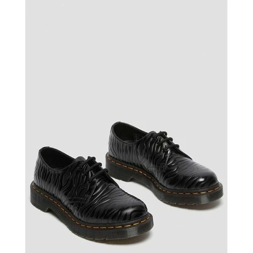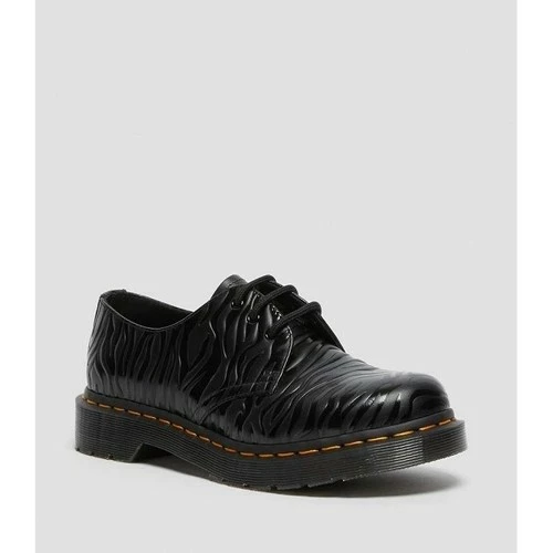 Gaufrées d’un motif zèbre original, puis enduites pour une finition ultra-brillante et glossy. Notre nouveau motif gaufré zèbre repousse les limites de du cuir Smooth classiques. Fidèles à notre modèle classique datant d’il y a 60 ans, ces chaussures 1461 sont dotées d’une semelle DMS couleur fumée, bénéficient du montage Goodyear et sont dotées de surpiqûres jaunes. Les chaussures 1461 à 3 œillets sont le deuxième modèle créé par Dr. Martens, des chaussures très appréciées pour leur côté facile à porter Le cuir Smooth, résistant et rigide au début, peut être poli pour une brillance absolue ou pourra afficher fièrement les signes du temps. À vous de choisir. Nettoyez-le avec un chiffon humide et nourrissez-le avec du cirage Dr. Martens. Nos modèles bénéficiant du montage Goodyear sont thermocollés à une température de 700°C et renforcés par notre surpiqûre signature